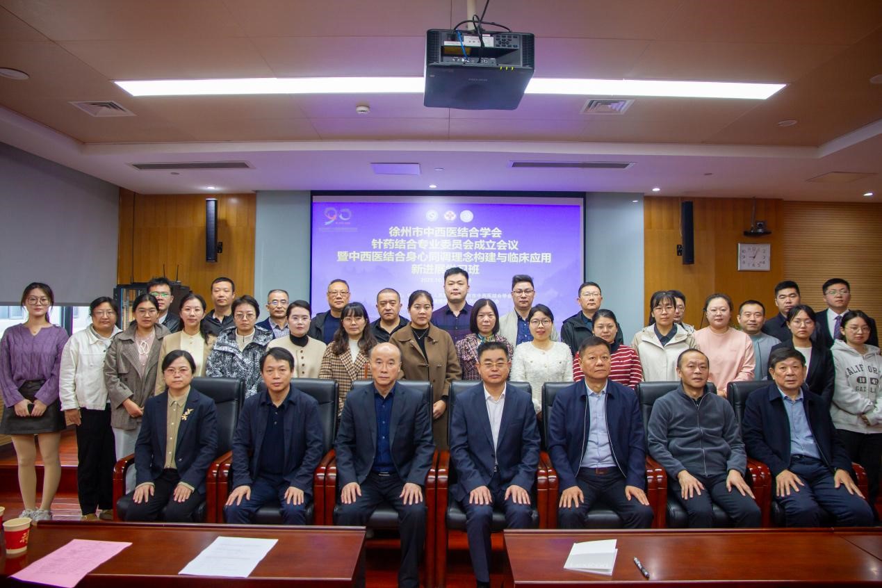 2025年10月19日,由徐州市中西医结合学会主办、徐州市第一人民医院承办的“徐州市中西医结合学会针药结合专业委员会成立会议暨中西医结合身心同调理念构建与临床应用新进展学习班”在徐州市顺利召开。会议聚焦针药结合领域前沿进展,旨在推动针药结合医学高质量发展。徐州市卫生健康委员会中医处处长尚文良、徐州市第一人民医院党委书记丁继存及来自全市20余家医疗机构的专家学者共73人参会,会议由孙慧丽主任主持。