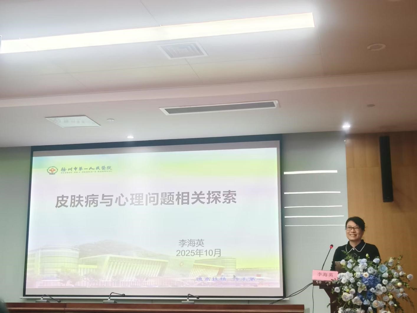 徐州市第一人民医院皮肤科李海英主任以《皮肤病与心理问题相关探索》为题,通过分析神经性皮炎、斑秃等多种常见案例,重点探讨了在皮肤科诊疗中识别患者心理因素、运用中西医结合方法进行“身心同治”的关键问题。
